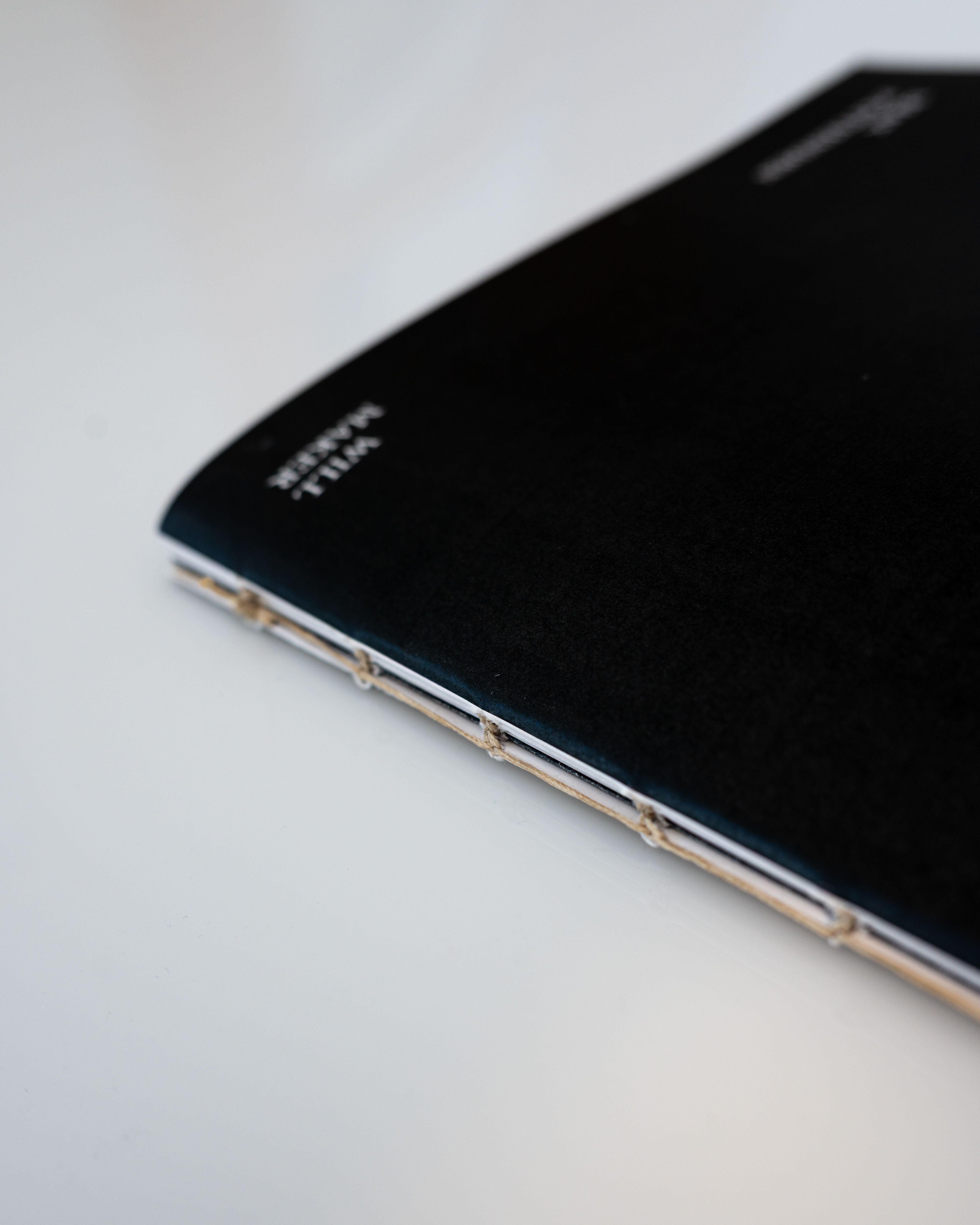 84 pages, open bound, on 140gsm recycled cyclus paper.